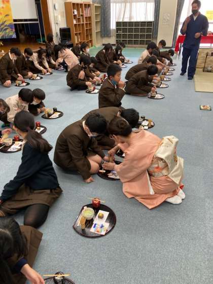 自分たちが作ったお茶碗で、お茶をたててお菓子を食べながらお茶を楽しみます。