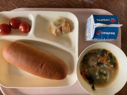 【今日の献立】黒糖パン さけのマリネ 肉だんごと麦のスープ プチ