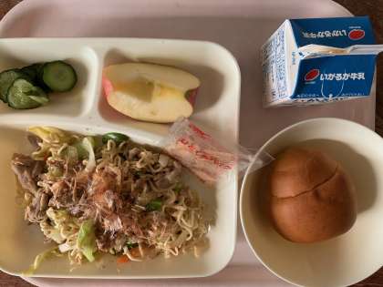 【今日の献立】小黒糖パン 和風焼きそば きゅうりのしょうがづけ