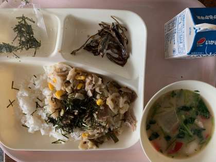 給食では、金時にんじんを使用し、関西風の白みそ仕立てのぞう煮です。また、ごまめは、「田作り」とも言われ、昔、肥料としてカタクチイワシを田にまいたところ、豊作になったことから、五穀豊穣を願う意味がこめられています。