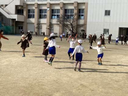 なわとび週間や大なわとび大会があるので、練習をしています。