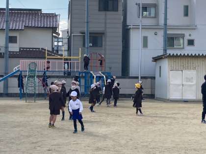 非常に寒い中、子どもたちはとっても元気です。