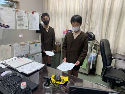 本日の全校朝会はTeamsを使って各教室で行いました。