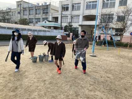 今回の公園清掃は5年です。地域の方がきれいにして頂いていますが、子どもたちも頑張ります。