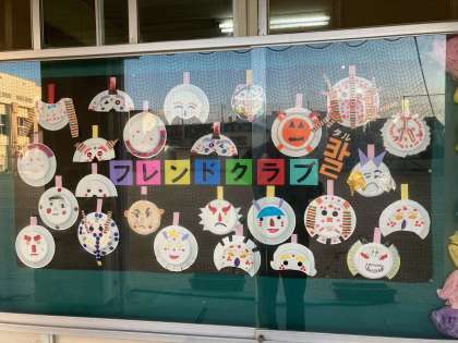 フレンドクラブで作った作品を職員室の前に展示しました。