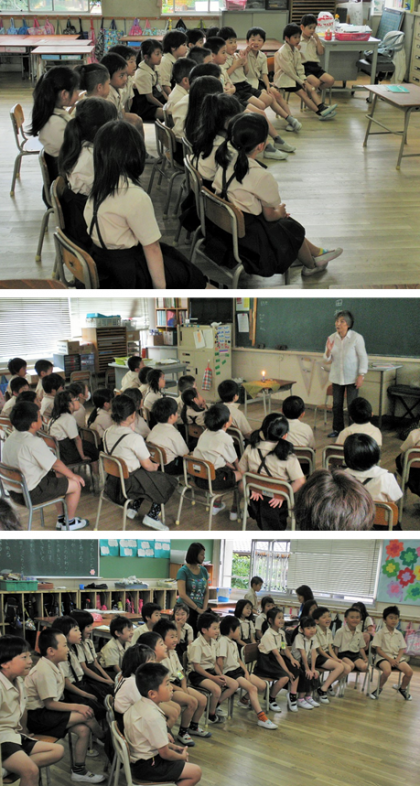 2時間目は1年生から3年生のクラスごとに日本の民話や昔話などを聞かせていただきました。