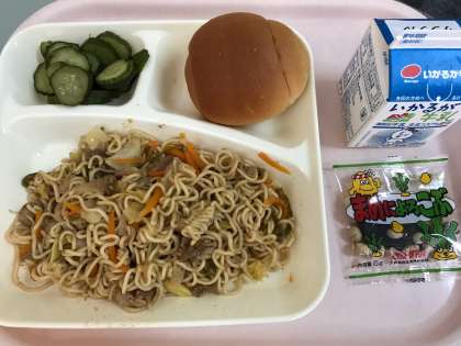 焼きそばは、児童のみなさんが大好きな献立です。しっかりと食べられている人がたくさんいました。