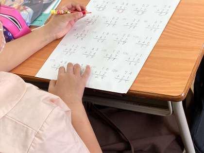 2年の「算数」の授業の様子です。基本の計算の学習です。