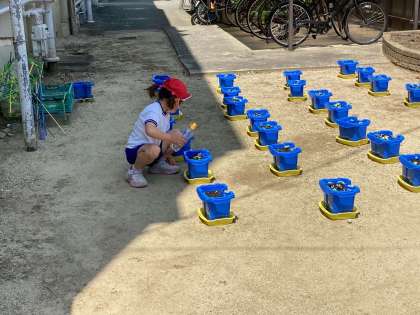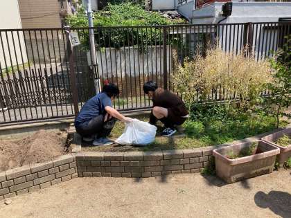 給食委員会のエリアの雑草を抜きました。