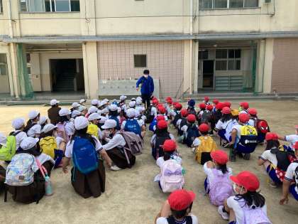少し暑い天気です。3年生と4年生合同で服部緑地に行きます。