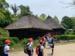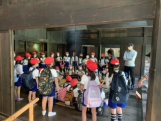 縁側や土間、囲炉裏などを見学しました。昔の家のつくりや道具に興味津々な様子でした。