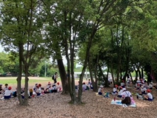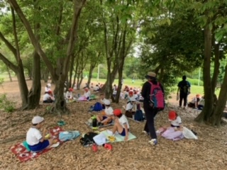 気温も高くなってきたので木陰で昼食を食べます。