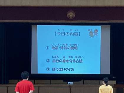 西成区役所の防災担当の方から、DVDを使って防災の学習をして頂きました。