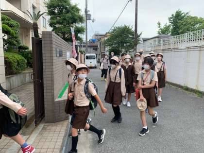 先生方のお迎えの中、元気に帰ってきました。