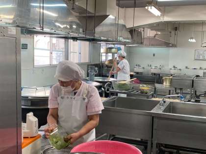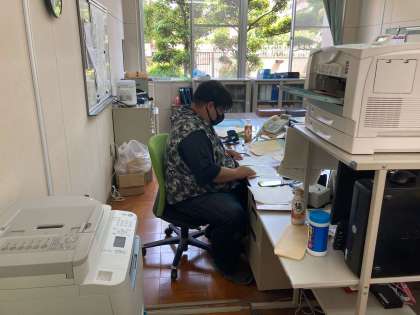 事務職員さんや給食調理員さんの業務の様子です。子どもたちの為に頑張ってくれています。