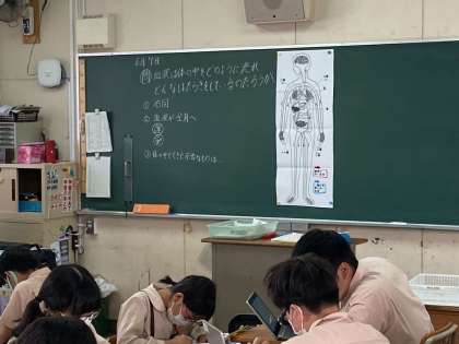 血液の流れについて学習しています。インターネットにつないで、調べ学習をしています。時代は変わりましたね!