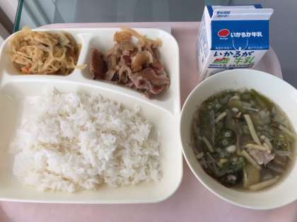 今日は和風の献立でした。もずくとオクラのとろり汁は、具材がたっぷりなとろみのある汁です。多くの児童のみなさんにとって、もずくは食べ慣れない食材なため、好ききらいが分かれる献立です。給食はさまざまな食材を食べることができる機会なので、好きなものも、そうでないものも食べてみて欲しいと思います。