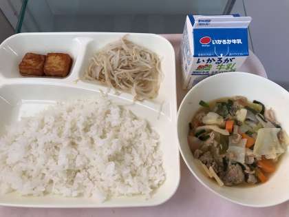 今日の献立のあつあげのピリ辛じょうゆかけは、あつあげを焼物機で焼き、砂糖、こいくちしょうゆ、トウバンジャンを合わせたタレをかけています。