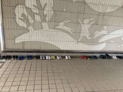 残念ながら、雨のためプール水泳は中止です。
