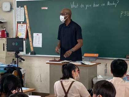 自宅にいる児童と対面での授業のハイブリッド授業です。