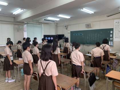 校長先生からは、生活のリズムを取り戻して下さいと言うお話しと外壁の工事が始まりますので、資材置き場に近寄らないようにお願いしました。
