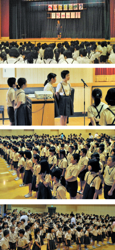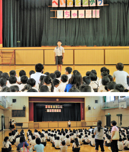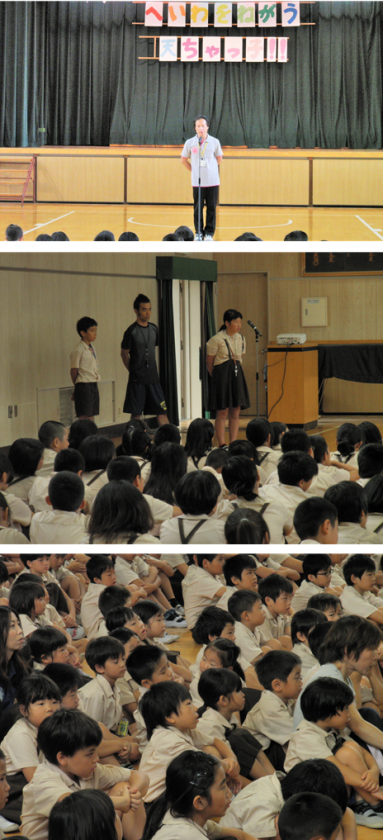 本日は、「ピースてんがちゃや集会」を体育館で行いました。