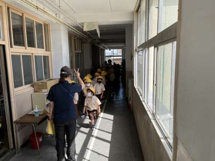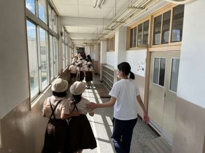 地震の後の津波を想定しての二次避難の訓練です。3階に避難しました。