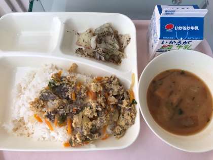 今日の献立の他人丼は、鶏卵の個別対応献立です。卵を食べることができない人に、卵を除去した他人丼が提供されます。丼は、ボリュームがありとてもおいしい一品でした。