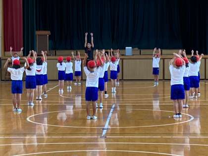 ラジオ体操の練習です。頑張ってね。
