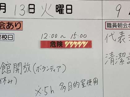 暑さ指数が「危険」の予報です。残念ながら運動場では遊べません。