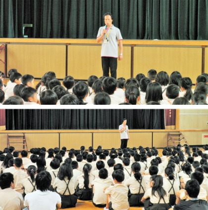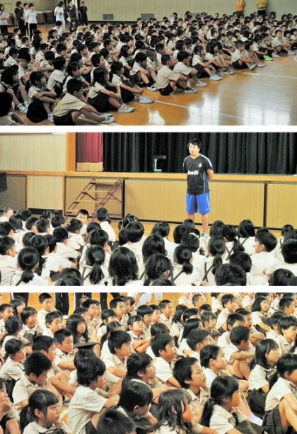 子どもたちはみんな、体育館でもよい姿勢でお話を聞いていました。