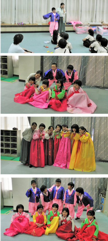 本日は、民族衣装「チマ・チョゴリ」を実際に着せていただきました。