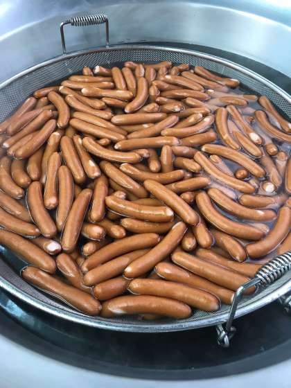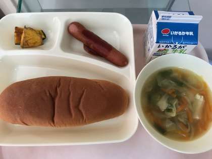 今日の献立のウインナーのケチャップソースは、ゆでたウインナーに、ケチャップ、トンカツソース、ウスターソースを合わせてでん粉でとろみをつけたソースをかけています。児童のみなさんに好評な一品でした。