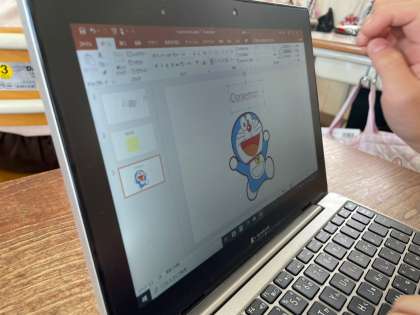 プレゼンするのに「パワーポイント」で資料を作成しています。