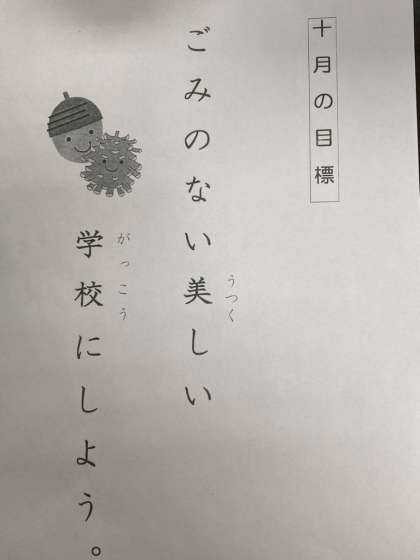 10月の学校目標は「ごみのない美しい学校にしよう」です。