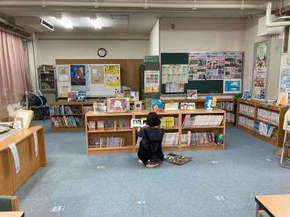 学校司書の森口さんが蔵書の整理、図書のレイアウト、子ども新聞の整理などをしていただいています。保護者のボランティアによる図書館開放もあり、子どもたちの読書の環境が整ってきました。どんどん読んでくれる事を期待しています。