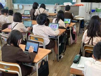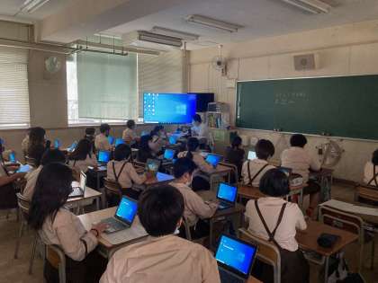 本校では休業日以外は活用率100%を目指しています。昨年までは、タブレットの使い方が中心でしたが、今年度はタブレットを使って学習することを目標にしています。当然ルールやマナーを守りながらになります。
