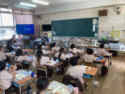 西成警察の署員の方に、給食の時間に「防犯」についてのお話しを放送でして頂きました。