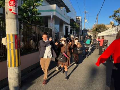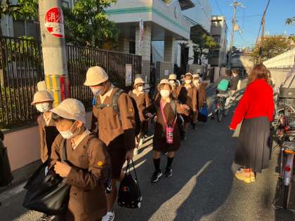 学校を出発します。