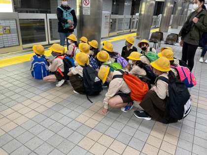 電車に乗ります。先生の言うことを聞いてね。