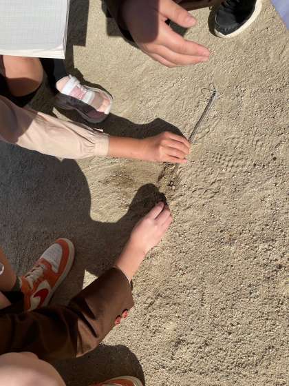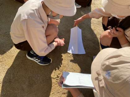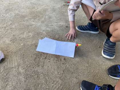 日向と日陰の温度を測っています。実際に測って体験することは、脳の海馬を刺激して記憶に残るものです。