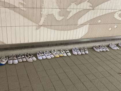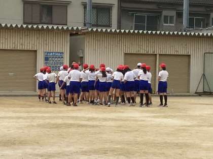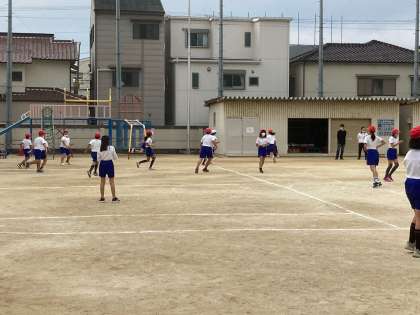 体育の授業の様子です。靴や態度、服装はきっちりできています。