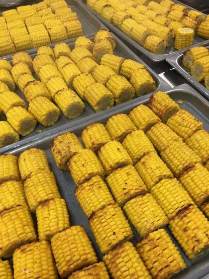 焼きとうもろこしは、焼物機でとうもろこしを焼いています。こちらもおいしい一品でした。