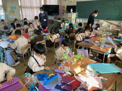5年 C-NETの先生と担任の先生が英語で「会話?」していました。