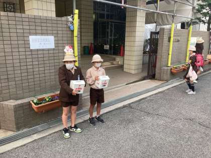 今週、「あいさつ」運動をします。合わせて「赤い羽根」共同募金も行います。