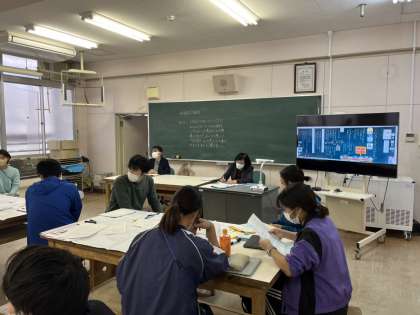 本日の研究授業について意見交換し、スクールアドバイザーから助言を頂きます。