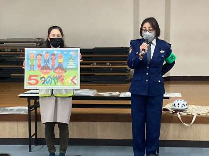 西成区役所の防犯担当の方と西成警察官に来て頂き、「交通安全教室」を行いました。