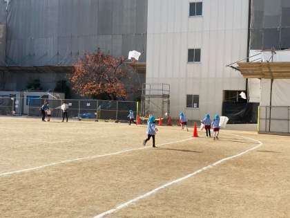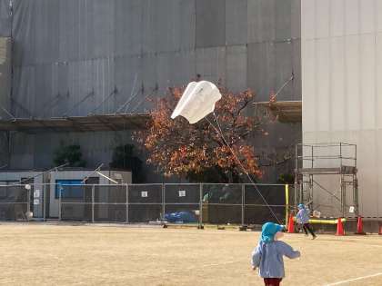 天下茶屋幼稚園の児童が凧揚げに来ました。
