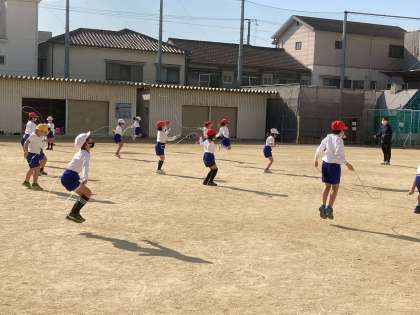 1年生は「なわとび」の練習です。3学期のなわとび週間目指しています。