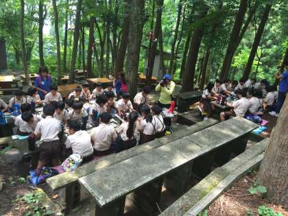 部屋に荷物を置いて、屋外で昼食を食べました。